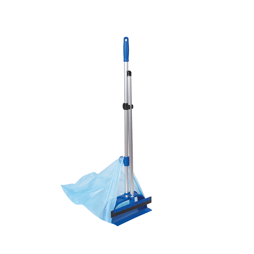 A versatile lightweight sweeping set with joined rubber blade, open ended pan and integral bag holder to remove and hygienically collect dirt at the same time.
