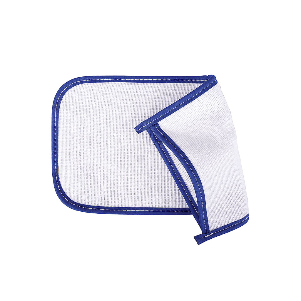 Ideal for safely handling hot oven trays and pans. Designed with a blue binding edge.