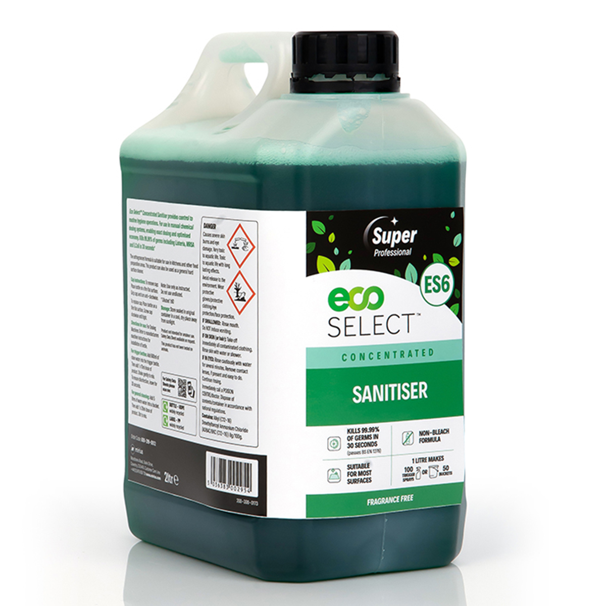 Eco Select™ Concentrated Sanitiser provides control to routine hygiene operations. Kills 99.99% of germs including Listeria, MRSA and E.Coli in 30 seconds*. Suitable for use in kitchens and other food preparation areas. This product can also be used as a general hard surface cleaner.