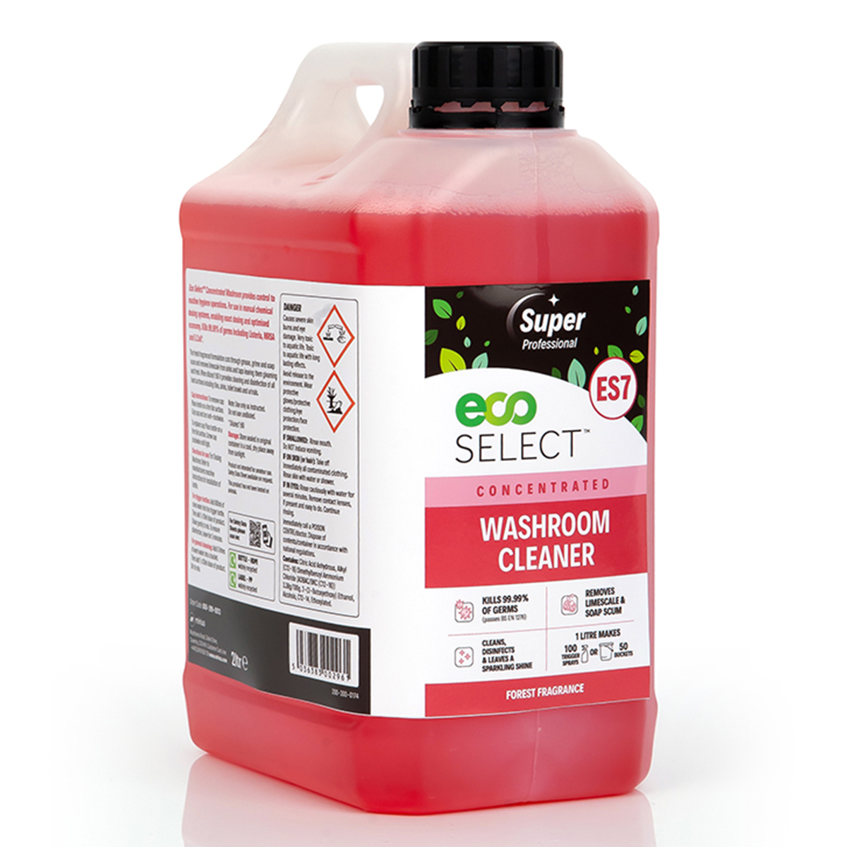 Eco Select™ Concentrated Washroom Cleaner provides control to routine hygiene operations. Kills 99.99% of germs including Listeria, MRSA and E.Coli* in 30 seconds. The fresh fragrance formulation cuts through grease, grime and soap scum and removes limescale from sinks and taps leaving them gleaming and fresh. When diluted 1:60 it provides cleaning and disinfection of all hard surfaces including tiles, sinks, toilet bowls and urinals.