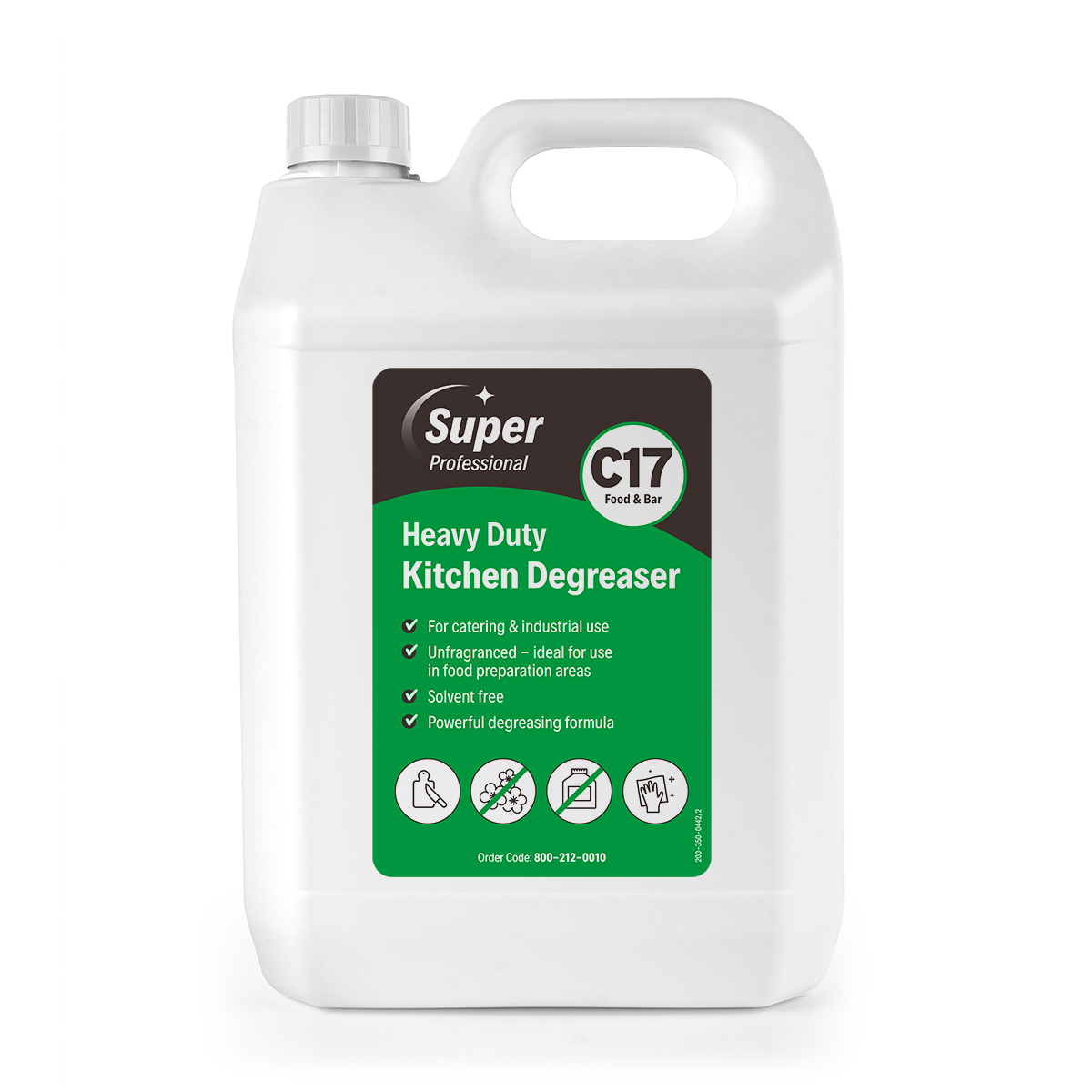 Heavy Duty Kitchen Degreaser is an excellent all round cleaner for most surfaces. It cuts through grease deposits, protein and fat with ease. Leaving a shining streak free surface. Suitable for use on work tops, floors, walls etc.