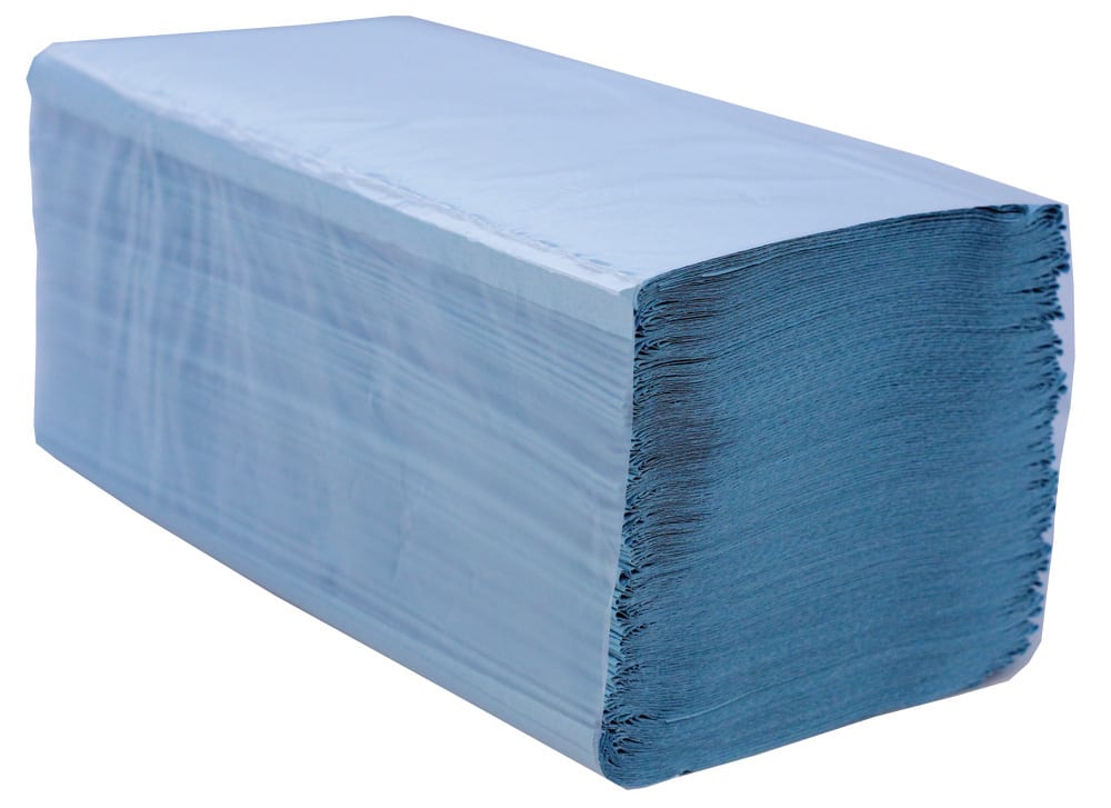 Interfold Hand Towels. Available in blue or green. 1 ply paper towels.
