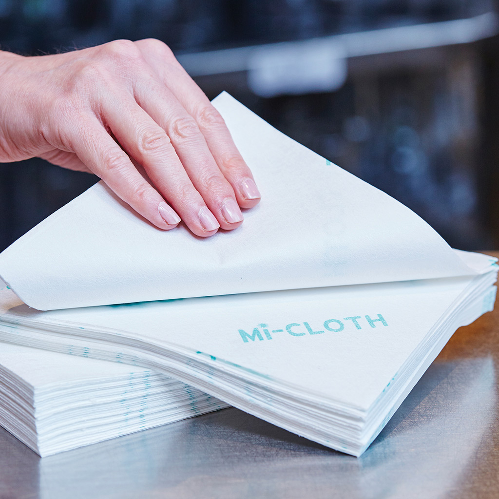 Mi-Cloth Microfibre is a disposable microfibre cloth for general cleaning. Ideal for use to prevent cross-contamination, it is a low linting, lightweight and food contact safe cloth which stays strong even when damp.