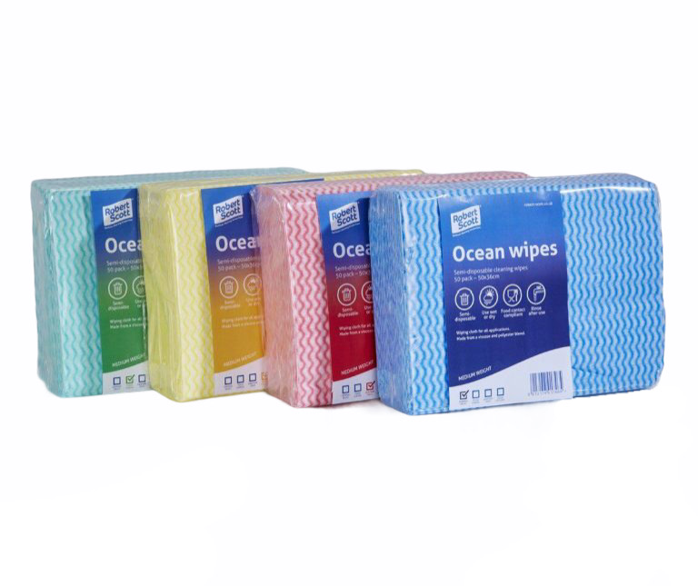 Ocean Wipes are a general purpose medium weight cleaning wipe. Made from a viscose and polyester blend. Ocean wipes are food contact safe.