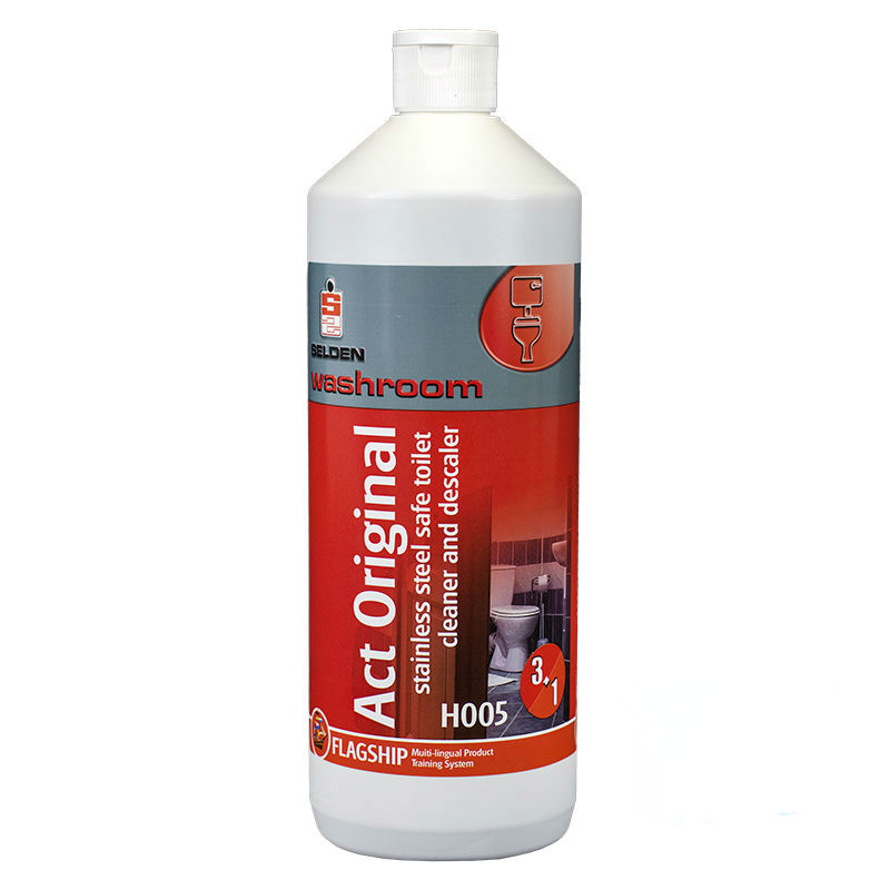 Selden Act Toilet Cleaner is a concentrated liquid lavatory cleaner which removes limescale and organic deposits. Viscous formula clings longer for more thorough action. Cleans and descales washroom areas. 1 litre.