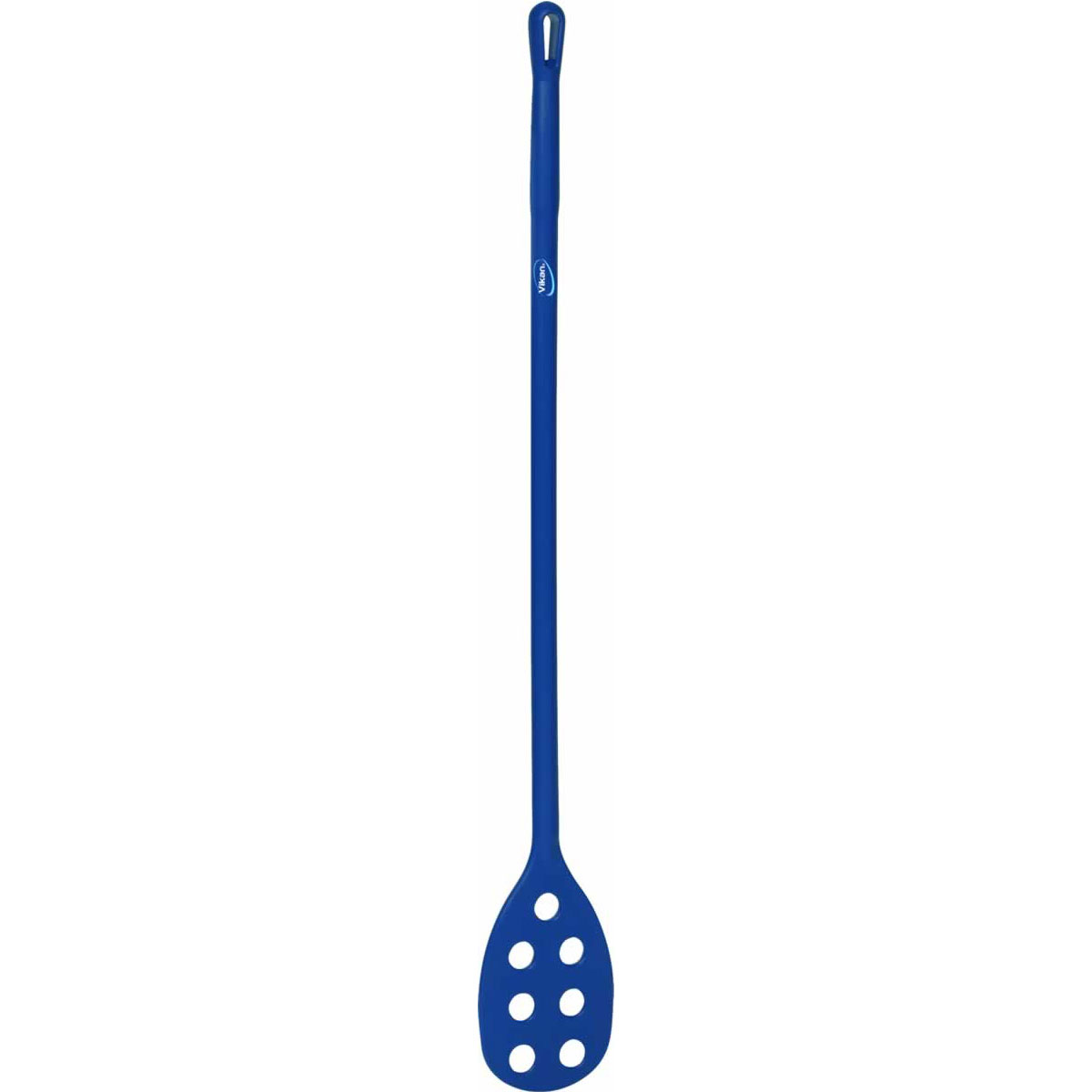 Vikan Food Mixer with Holes, Metal Detectable is a fully-moulded mixer featuring a small blade and a long handle. Suitable for stirring food ingredients in large pots and vats. Small holes allow ingredients to pass through the stirrer blade and ease stirring. Ø31mm.