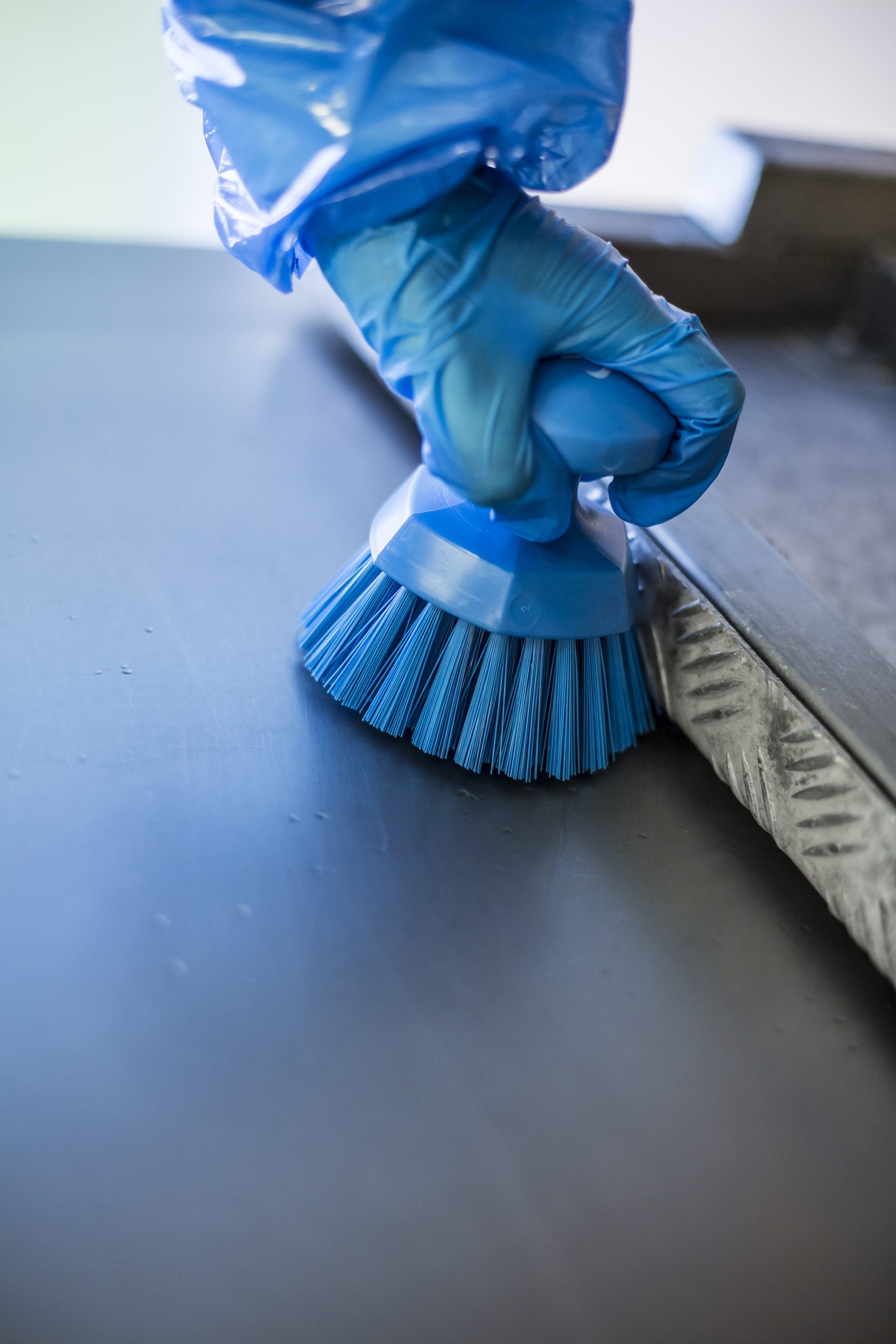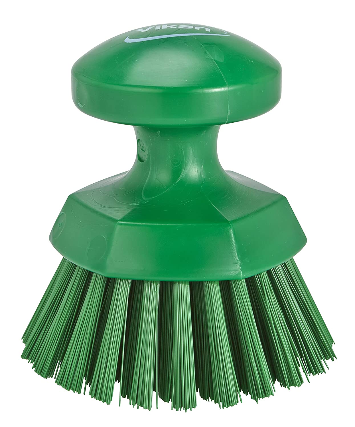 Vikan Round Hand Scrub, Ø110 mm effectively scrubs and cleans conveyor belts, food containers and more. Featuring an ergonomic design that lets you apply more pressure to the brush during use.