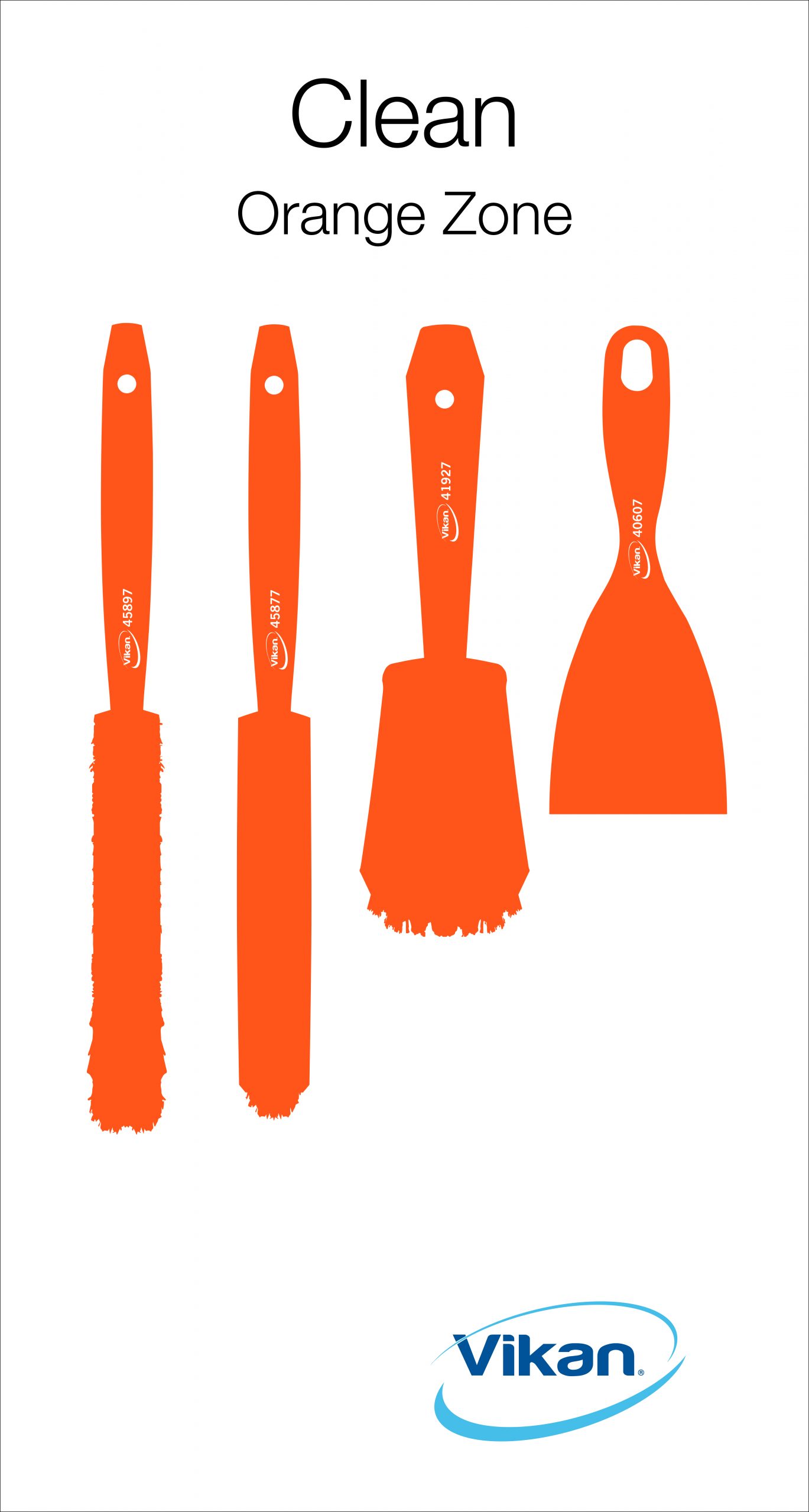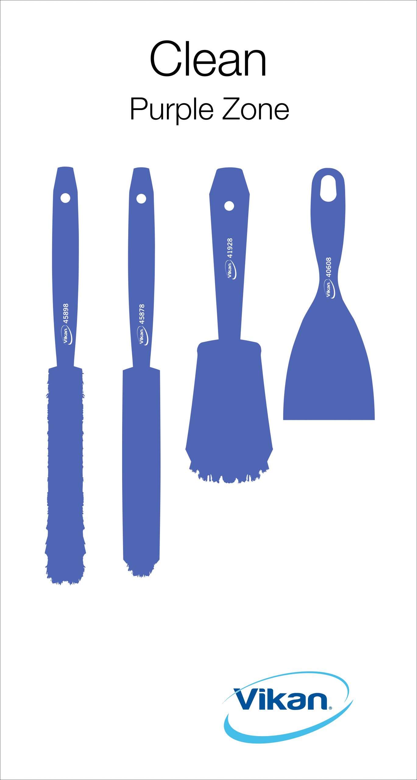 Vikan Shadow Board is an effective and affordable way to ensure GFSI-compliant “5S” storage of your hygienic cleaning tools. Colour-coded for hygienic segregation, these boards keep your tools organised, clean and in good condition – saving you time and money every day. They also make it easier to stay on top of inventories, and to keep the auditors satisfied.