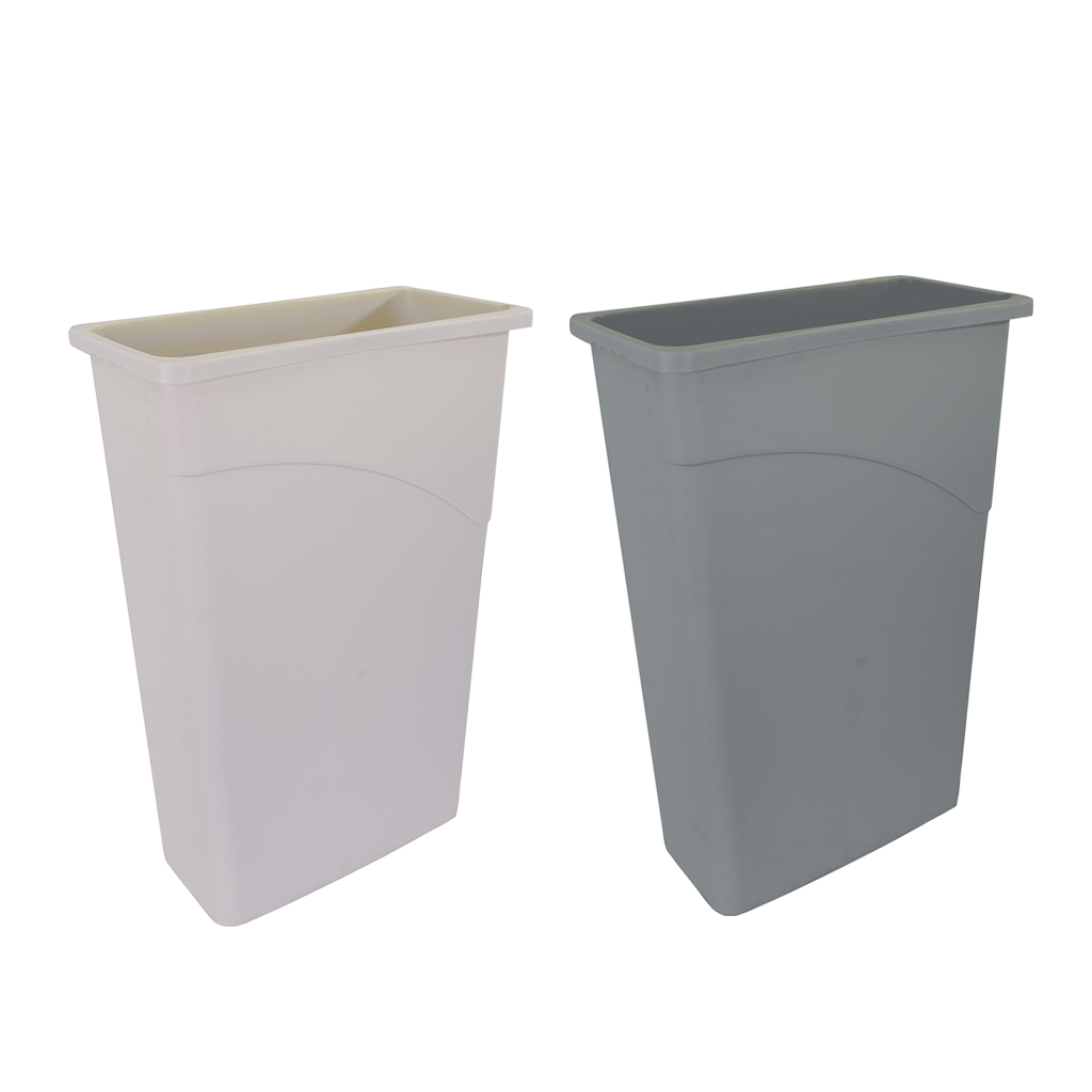 Wall Hugger Bin Base 90L is a slimline waste container designed to save space as it only protrudes 30cm from the wall. It is made from hardwearing polyethylene, with moulded hand grip and bag catch to save time when emptying. There is a choice of two self-closing lids (sold separately): a spring-loaded single flap lid or two door centre-drop lid with a larger opening. A wall bracket is also available for easy mounting (sold separately).
